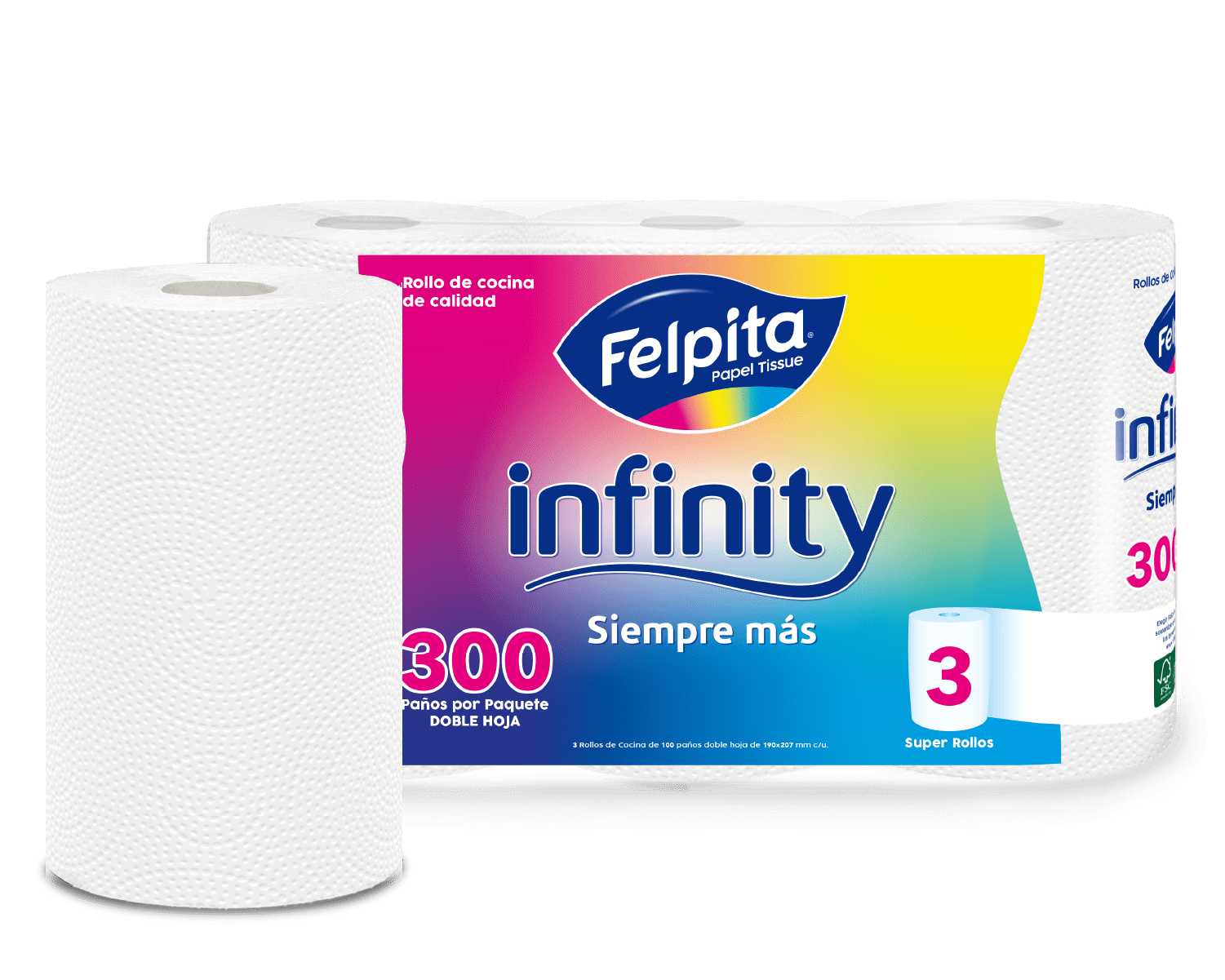 Infinity è il rotolo da cucina pensato per offrire una durata superiore grazie ai suoi 100 strappi per rotolo. Affidabile nelle attività quotidiane, accompagna la pulizia in cucina e in casa con ottime prestazioni e una praticità costante ad ogni utilizzo.