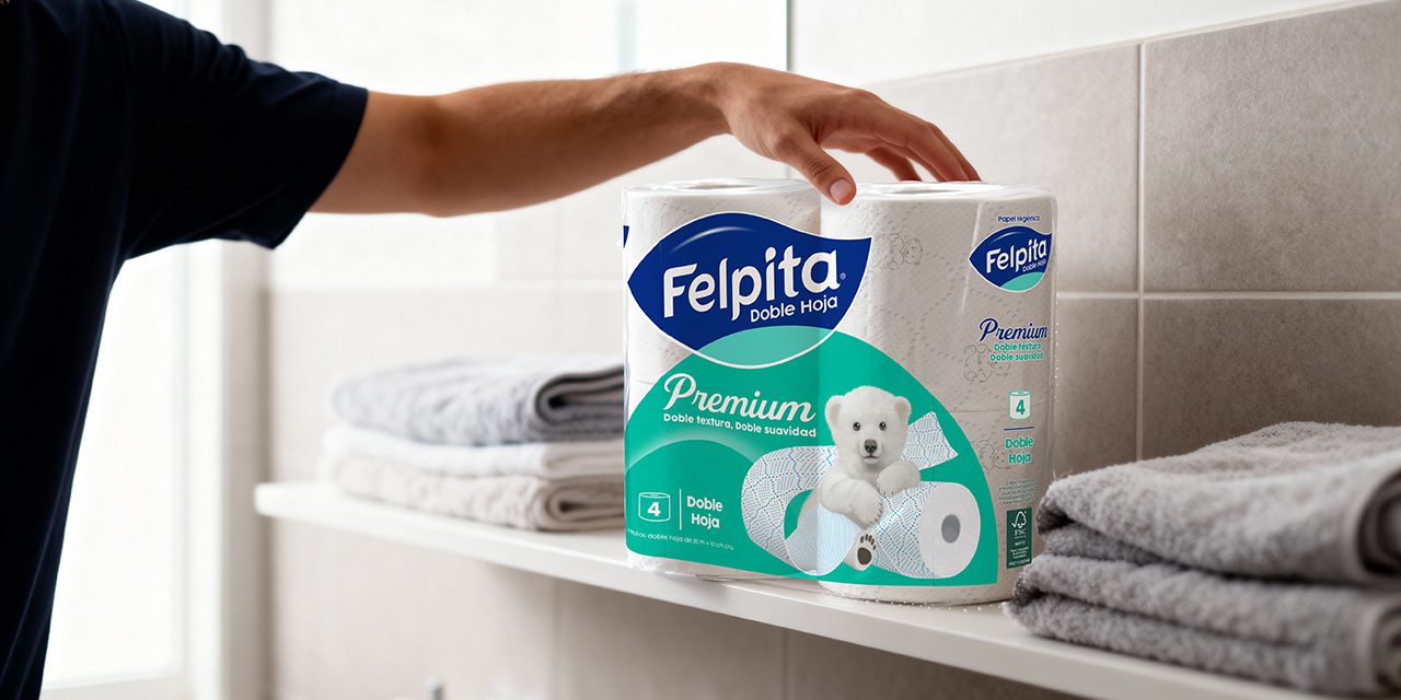 Felpita Premium Doble Hoja è la nuova linea di carta igienica che unisce morbidezza superiore e qualità costante. I suoi due veli offrono una sensazione avvolgente e una resistenza equilibrata, trasformando ogni utilizzo in un momento di comfort autentico. Felpita utilizza solo 100% pura cellulosa certificata FSC, per una scelta sicura e affidabile ogni giorno.